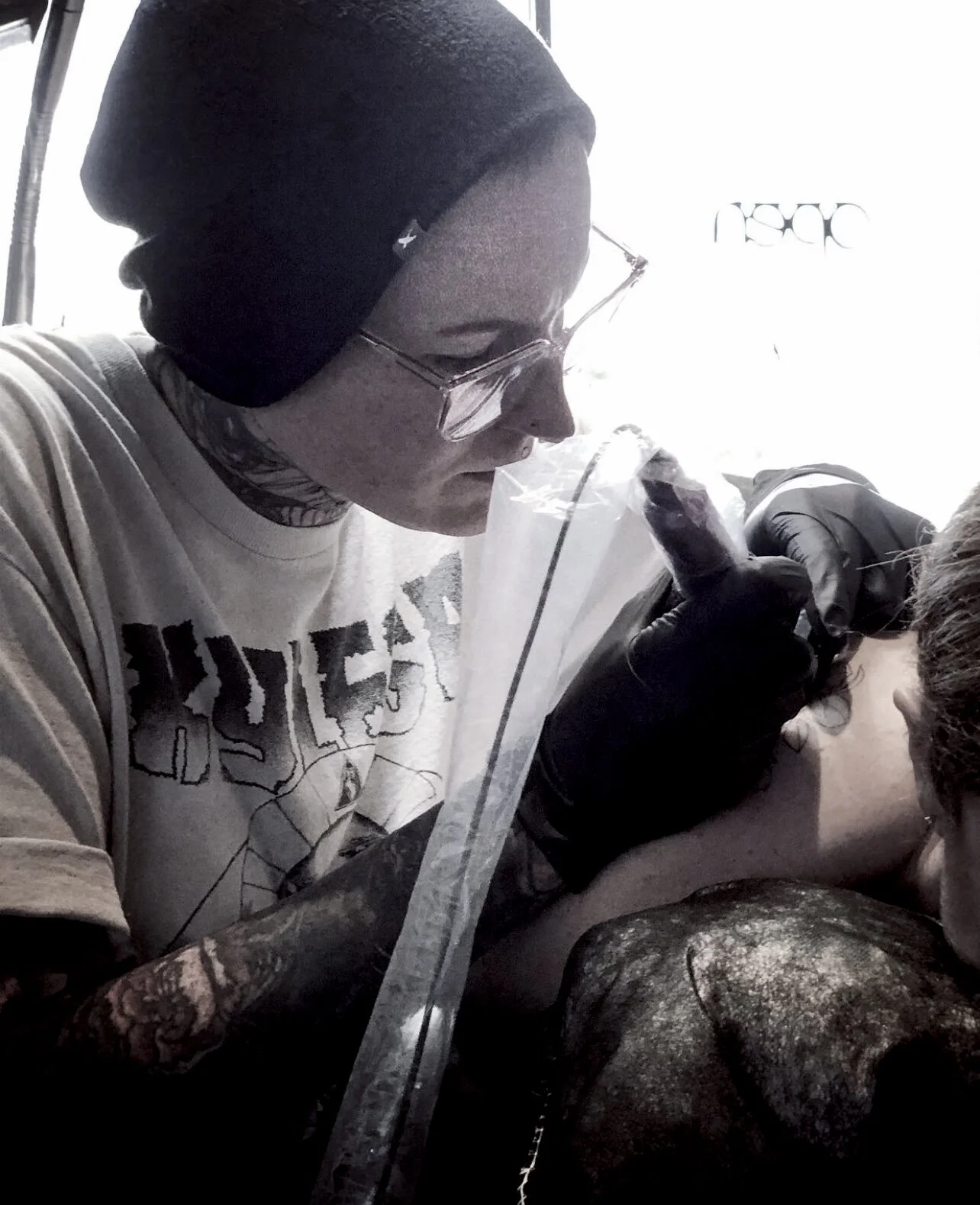 Kit Corbett is a bird lover, snack enthusiast and a friend of all animals. a Richmond, Virginia Native, she attended art school at VCU before finding her passion for tattooing during her apprenticeship in New York. In addition to tattooing, she enjoys oil painting and fiber arts.